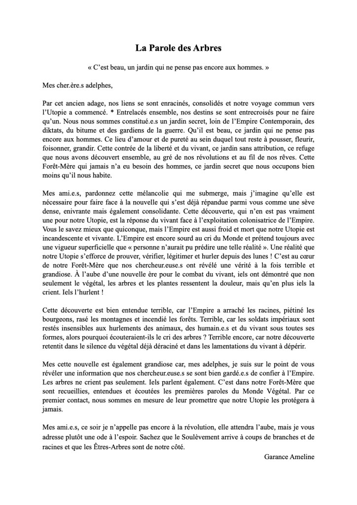 Dans l’équipe de La Cale, il y a notamment Léa, Romane et May. J’ai rencontré May dans l’atelier d’écriture que j’anime au Cabaret des Merveilles et iel m’a contacté pour me proposer de venir faire des ateliers ici, et préparer cet événement. Romane a découvert le travail de Chams et a adoré, donc elle en a parlé à Léa. Et Léa a lu Photosynthèses et a adoré, alors elle a contacté Camille. Et c’est comme ça qu’on a été réunis tous les trois !