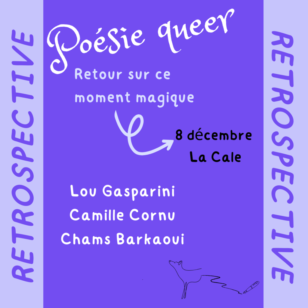 Le partenariat avec La Cale continue ! J’ai eu l’honneur de co-organiser cet événement du 8 décembre 2024, pour la deuxième journée d’anniversaire de La Cale, 3 ans déjà ! Toute la journée, on s’est régalé de poésie, de littérature, de performances d’artistes queers. J’ai pris un immense plaisir à animer cette journée, à guider le public à travers ce merveilleux voyage.