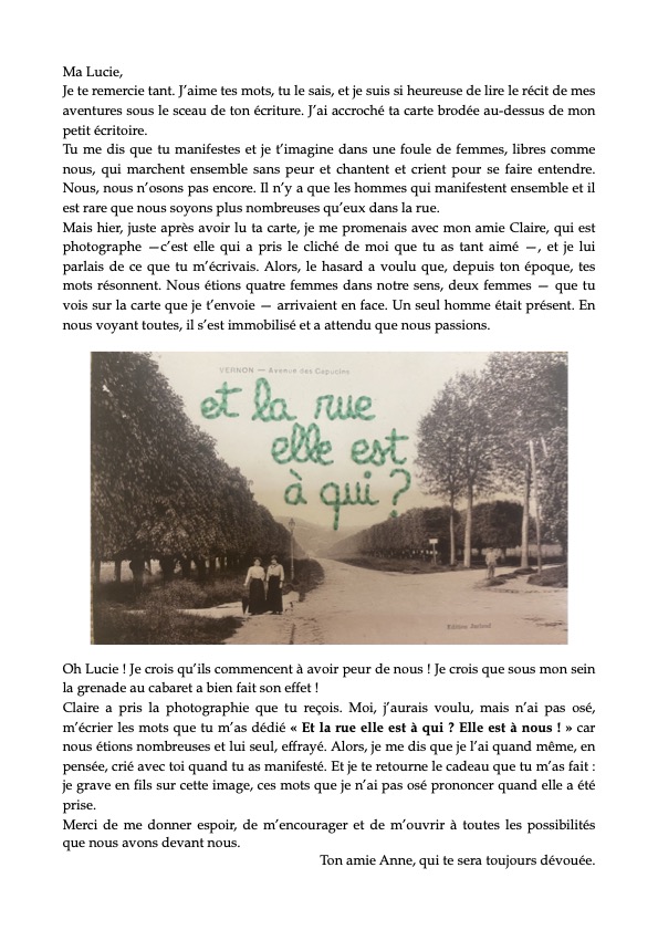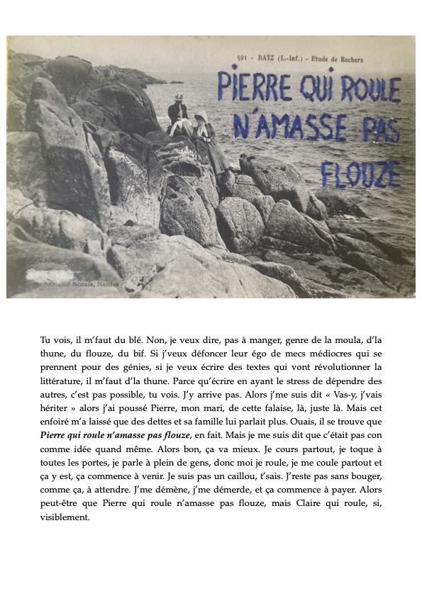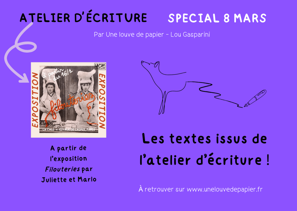 Le samedi 8 mars 2025, j’ai réuni quelques personnes à La Cale et ai invité mes participant-e-s à écrire à partir des cartes brodées de Filouteries, par Juliette et Marlo. Vous trouverez ici les textes qui sont nés de cet atelier ainsi que les photos des cartes qui nous inspiré-e-s.
